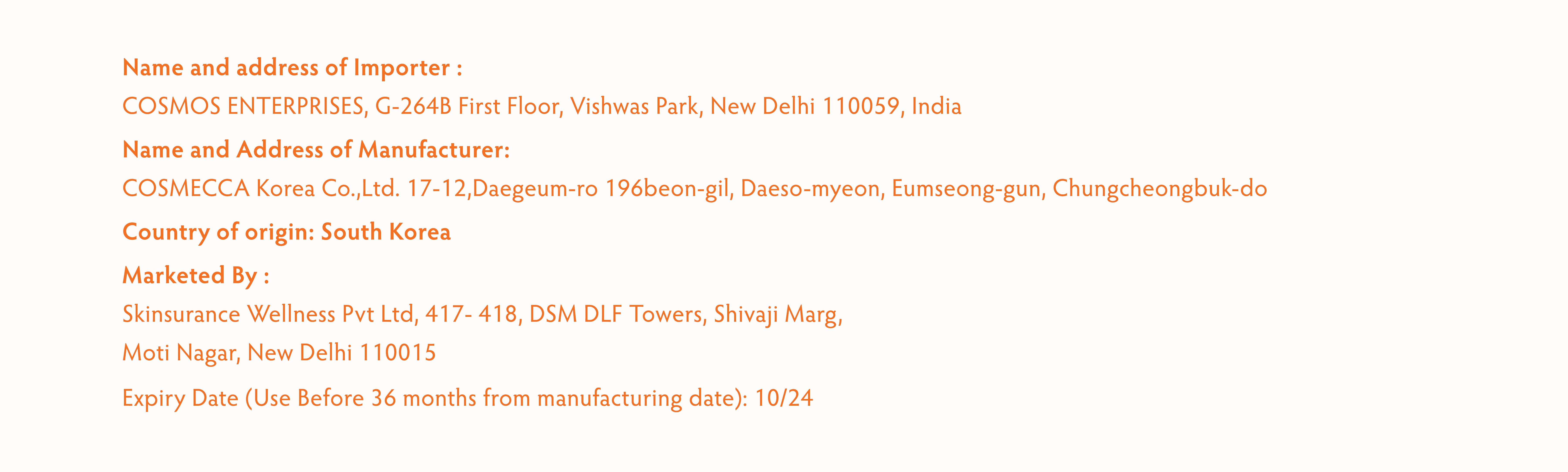 Water, Cyclopentasiloxane, Ethylhexyl Methoxycinnamate, Zinc Oxide, Titanium Dioxide(Ci77891), Ethylhexyl Salicylate, Glycerin Peg-10 Dimethicone, Dicaprylyl Ether, Polymethyl Methacrylate, Dimethicone, Homosalate, Silica, Disteardimonium Hectorite, Sodium Chloride, Aluminum Hydroxide, Salvia Hispanica Seed Extract, Centella Asiatica Extract, Houttuynia Cordata Extract, 1,2- hexanediol, Bis-ethylhexyloxyphenol Methoxyphenyl Triazine, Polymethylsilsesquioxane, Stearic Acid, Fragrance, Phenoxyethanol, Dimethicone/Vinyl Dimethicone Crosspolymer, Sorbitan Sesquioleate, Dimethicone/Methicone Copolymer, Propanediol, Ethylhexylglycerin, Butylene Glycol, Octyldodecanol, Bambusa Vulgaris Extract, Echium Plantagineum Seed Oil, Helianthus Annuus (Sunflower) Seed Oil, Cardiospermum Halicacabum Flower/Leaf/Vine Extract, Vitis Vinifera(Grape) Seed Oil, Lepidium Meyenii Root Extract, Tocopherol, Camellia Sinensis Leaf Extract, Salvia Officinalis (Sage) Extract, Melaleuca Alternifolia(Tea Tree) Leaf Extract, Maltodextrin